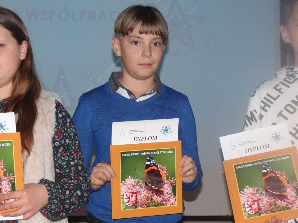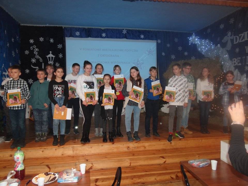 Wszyscy uczniów biorący udział w potyczkach ortograficznych otrzymali słodkie upominki, książki oraz dyplomy.