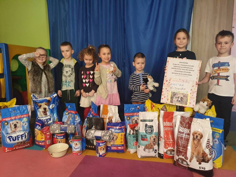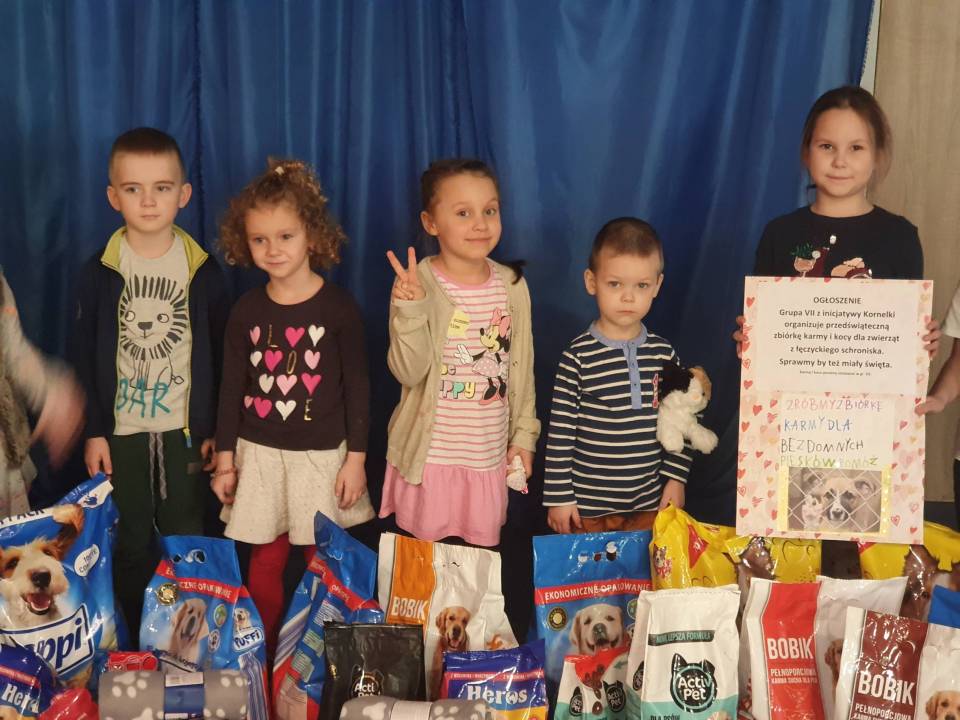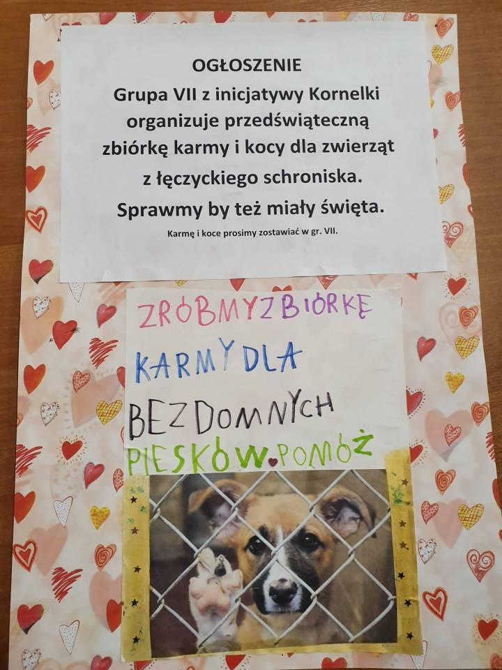 Jak relacjonuje Pani Anna, Kornelia bardzo przejęła się losem bezdomnych psiaków i wpadła na pomysł zbiórki, którą chciała zorganizować w swoim przedszkolu. Po rozmowie z rodzicami, Kornelka wykonała samodzielnie plakat i poinformowała kolegów i koleżanki z przedszkola o zbiórce karmy i potrzebnych rzeczy dla schroniska.