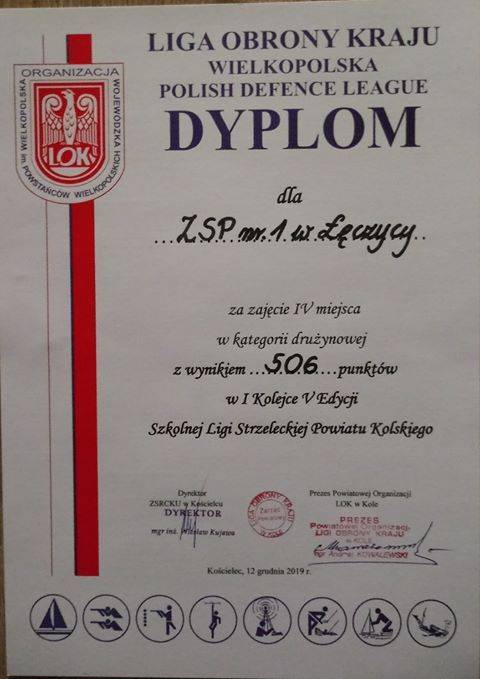Nasza drużyna uzyskała wynik 506 pkt a nasza zawodniczka Amelia Kucharczyk uzyskała 88 pkt na 100 możliwych. Sukces naszych zawodników jest tym większy, że potrafili nawiązać walkę z drużynami kłodawskich szkół, w których startowali zawodnicy, którzy w poprzednim sezonie zdobyli mistrzostwo i wicemistrzostwo Polski w strzelectwie sportowym.