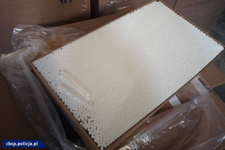 Jednocześnie służby wkroczyły do kolejnej nieruchomości. Tam ukryty był magazyn z komponentami do produkcji papierosów, w którym znajdowało się ok. 8,5 mln filtrów papierosowych.