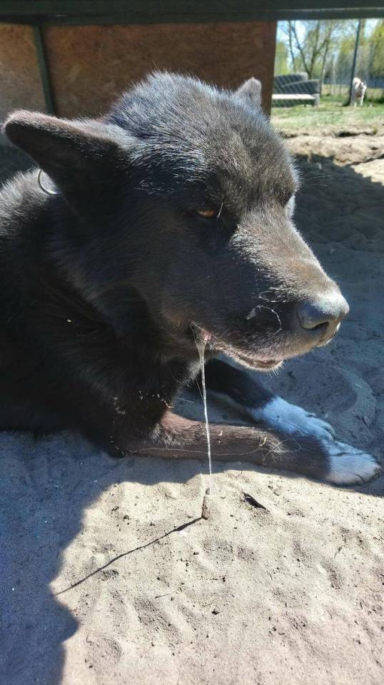 Tak wygląda pies dużej rasy ukąszony przez żmiję.