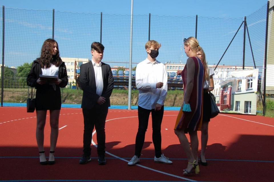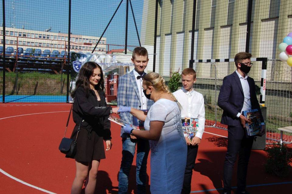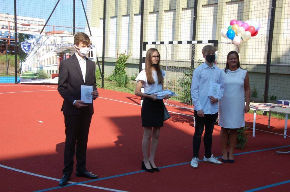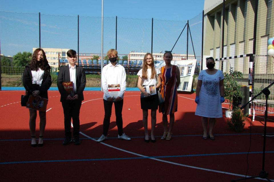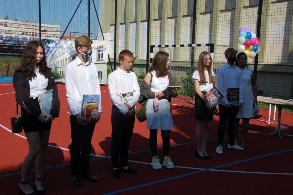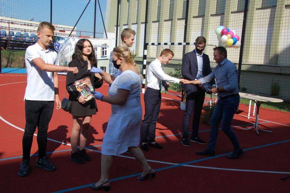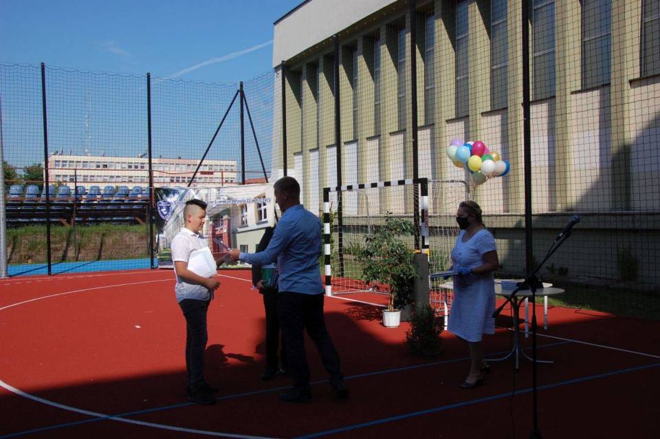Podczas bezprecedensowego, bo w ramach reżimu sanitarnego, spotkania uczniów, rodziców, dyrekcji i wszystkich nauczycieli na boisku szkolnym, uczniowie wyróżniający się na wielu polach otrzymali nagrody, gratulacje i zasłużone oklaski.