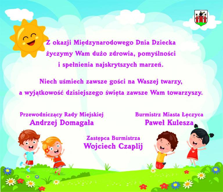 Burmistrz Paweł Kulesza, Zastępca Burmistrza Wojciech Czaplij oraz Przewodniczący Rady Miejskiej Andrzej Domagała ślą wszystkim dzieciom życzenia.